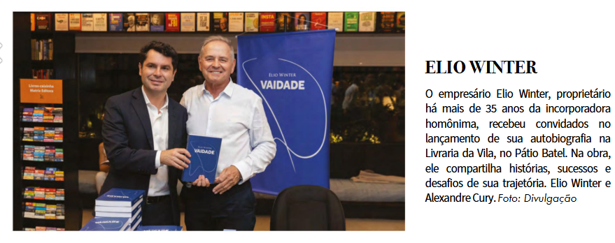 O empresário Elio Edvino Winter lançou o livro Vaidade em novembro de 2025, em evento realizado na Livraria da Vila, no Pátio Batel, em Curitiba.